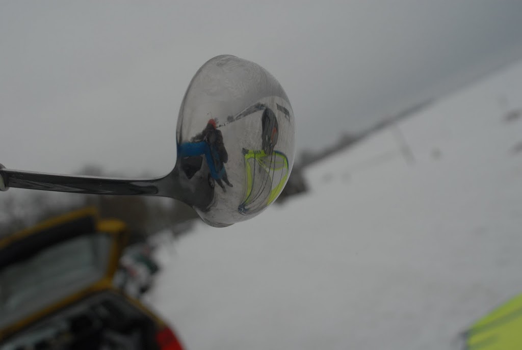 In the Netherlands it’s rare nowadays to have so much ice and snow. But when there is ice, the whole country get’s crazy for iceskating on natural ice. Even if the conditions are not good, they still try to get on the ice. So, my brother and me as well. Only this time a bit different. The Dutch Championships Icesurfing were cancelled so we tried out old-fasioned method at Muiderberg. In the morning we searched for hours and hours to find a ‘pollepel’ (big soup-serving spoon). It took us a drive to three different shopping centers and a massive search on the attic before we found one. Just one…And we’re with 2. But we just went! The whole day we stood on the ice with wind and snow and enjoyed ourselves with the most simple icesurfing system ever: the pollepel. We got many reactions from “levensgevaarlijk”, to “natural born inventors”. And best of all was, that we went much faster then all the kite-boarders with their ski’s and snowboards and that whilst the ice was really snowy. The video is my brother showing how to be fast on the ice (me filming).