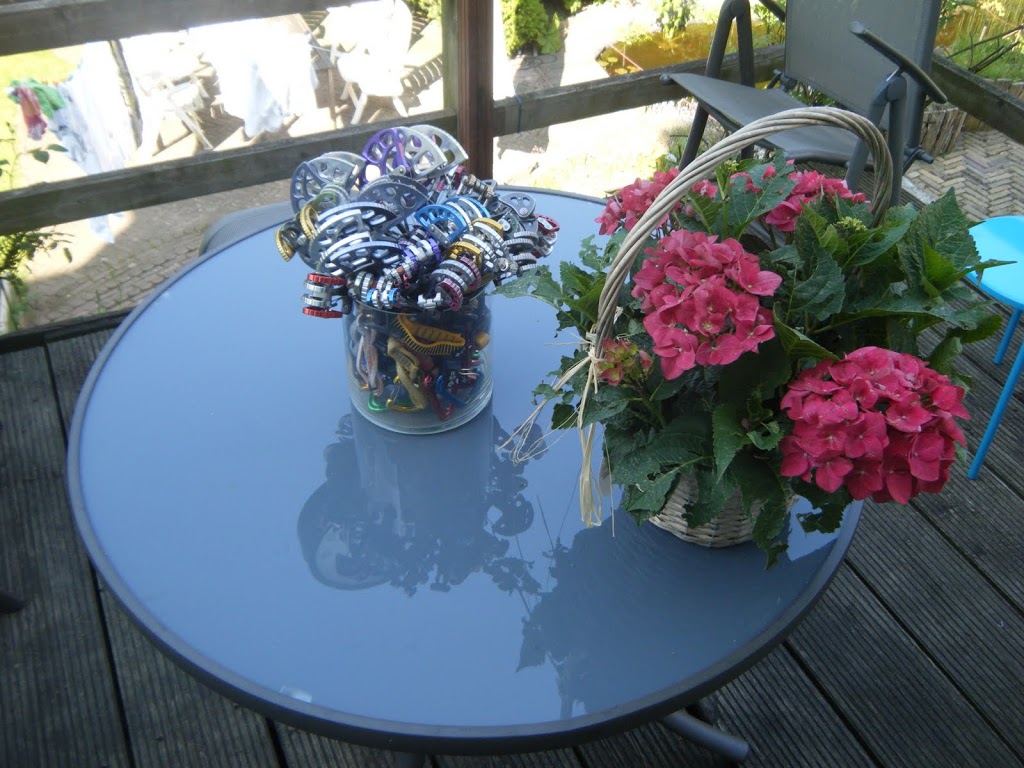 Got a whole set of cams now. Finally! Thanks to my friend Richard, I’m now the owner of a big vase with flowers ;) (Not all on the picture are mine though, some are Dennis’ cams) I also made a funny chart with a size/weight comparison. I’ll probably fill in more, when I have more cams. Now, go out and climb!