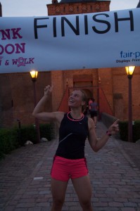 The run was nice: after one kilometre I was all alone, with three male runners in front of me and all female runners far behind. I had no music because my iPod doesn’t work. So I was listening to the silence and my own running pace. On the second part over the dike I saw the sunset. A huge orange bowl going down behind the dike.