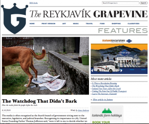 ‘The Watchdog that didn’t bark’. About how the Icelandic newspapers spread political propaganda instead of hard facts about the crisis. And, as I still read the online version of the newspapers, to keep up with what’s going on in Iceland…I noticed they didn’t change for one bit…