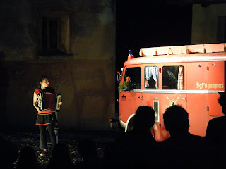 Pictures: Dennis & me bouldering in Stampa, the ‘Paula Fliegt’ street theatre in Castelmur, Dennis in ‘Linda’ the multipitch we climbed in Lirone.