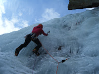 Which is not bad, I guess I need a bit of rest from the freezing cold. Yesterday walking up to the icefalls it was -17 C… When climbing the first pitch I could hardly get my screws and axes in the ice, it was all so brittle.