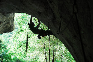 Dennis climbing a 7a+ in one of the caves. (Can’t remember the name)