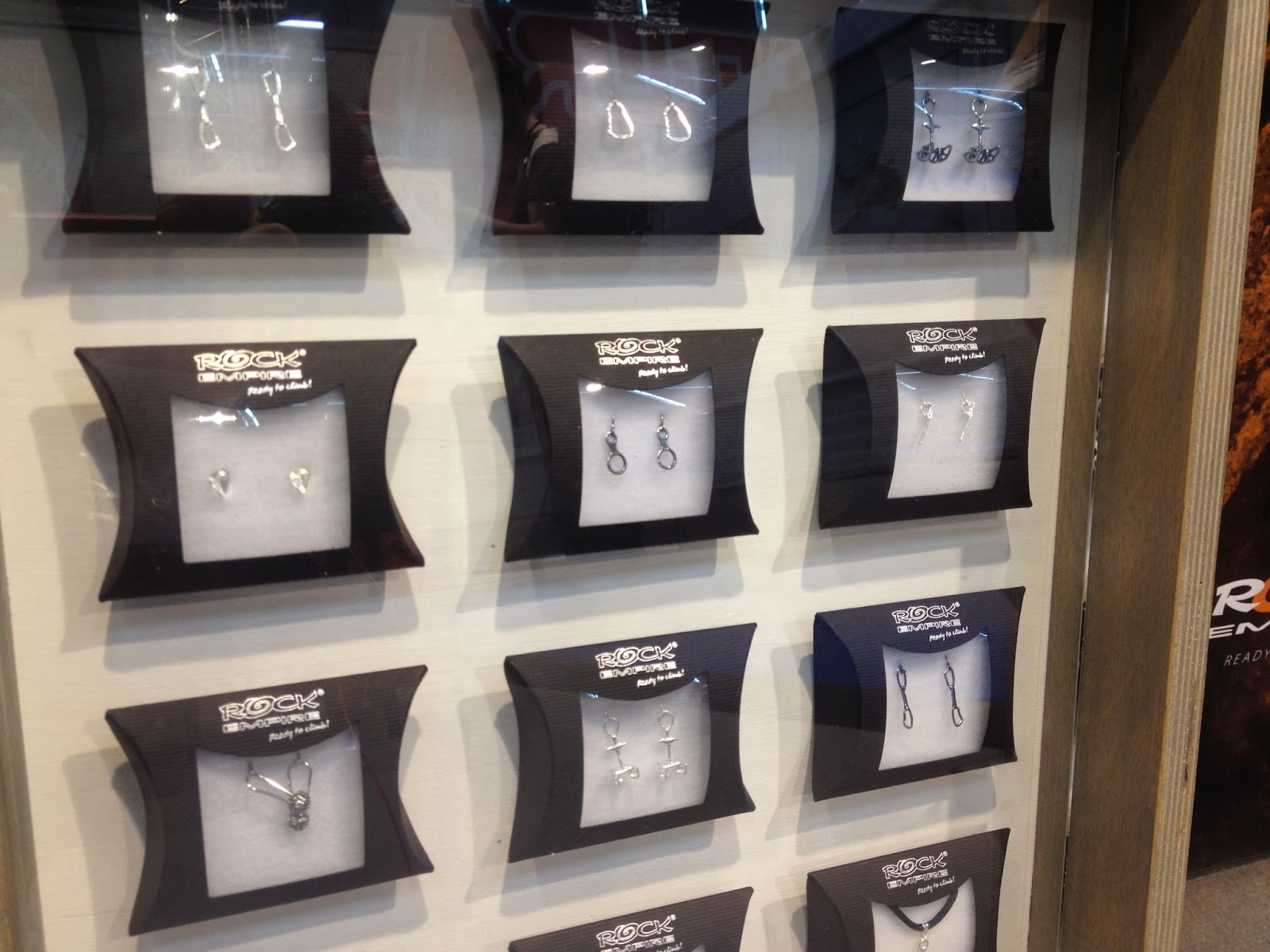 Rock Empire presented their climbing jewelry. A couple years ago I’d bought some earrings in climbing town Arco. They had the shape of tiny bolts with draws. Looking at the way Rock Empire presented them I was astonished. Very fine precisely shaped draws, bolts, cams and knots. Much finer then the ones I bought. Much nicer then what I’d seen so far. Marianne: “I’d like some as present from my boyfriend ;) “