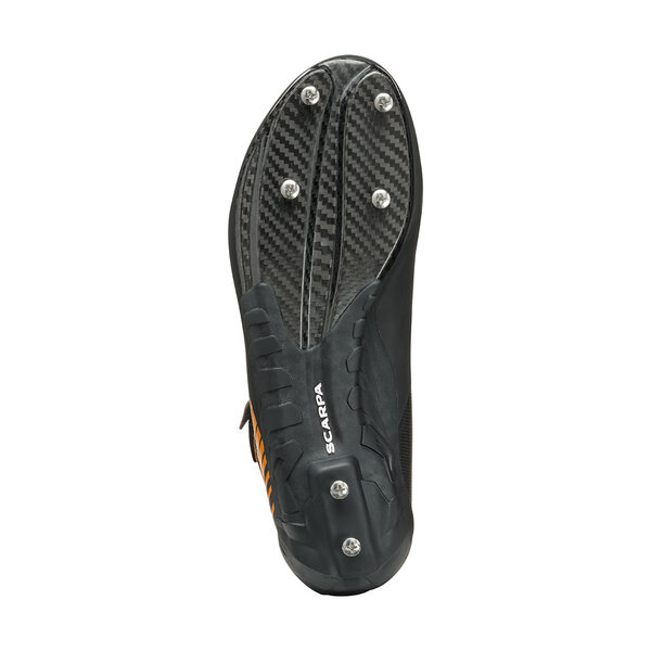 Carbon sole with 6 screw, 4 on the toe and 2 on the heel. This model is compatible with dry-tooling crampons (not provided).