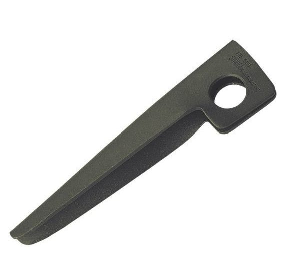 • slightly wedge-shaped piton